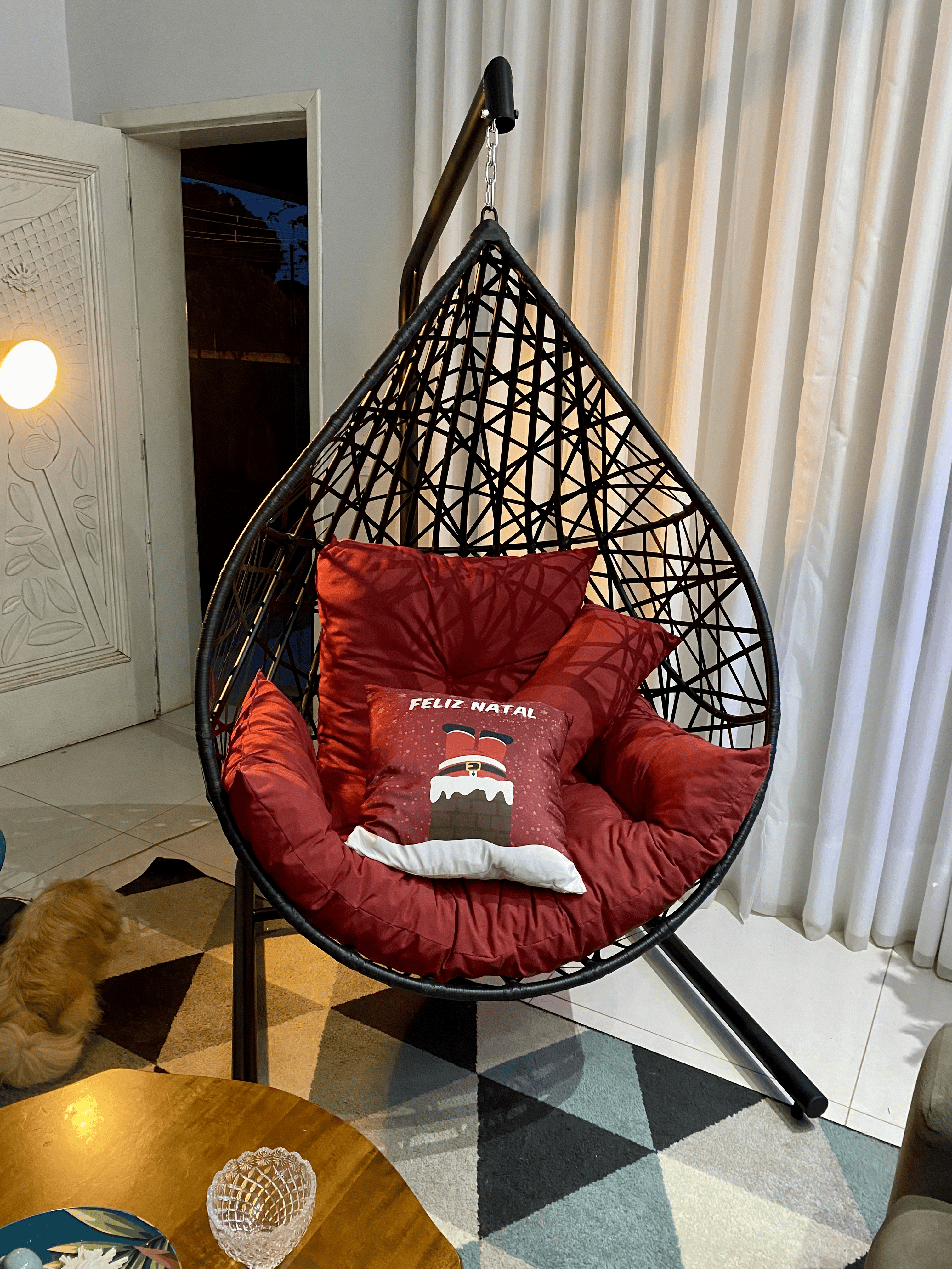 O Balanço Ninho Suspenso une elegância e conforto, criando um ambiente acolhedor e sofisticado. Feito em fibra sintética de alta qualidade, ele suporta variações climáticas e garante longa durabilidade. Além disso, seu assento acompanha almofadas macias, proporcionando momentos de relaxamento e bem-estar.
